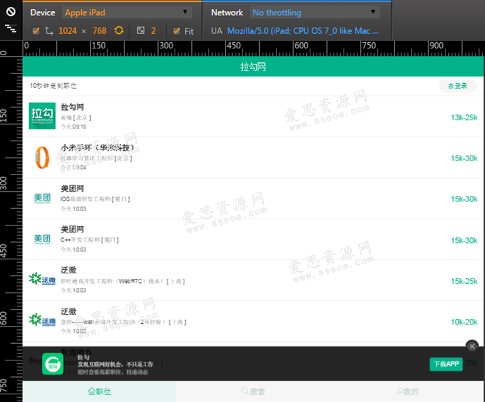 - 中间每条招聘信息不管分辨率怎么变,招聘公司的图标等信息都位于条目的左边,薪资都位于右边