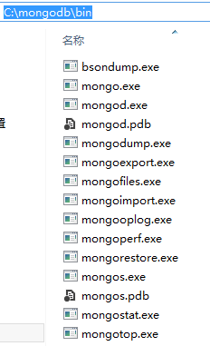 在安装的盘C:下建立mongodb文件夹,拷贝bin文件夹到该目录下,这样就相当于安装了mongodb的相关命令。